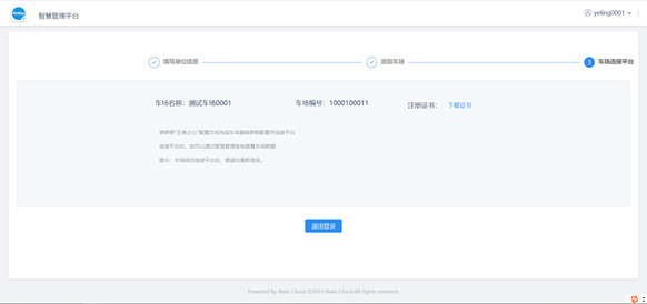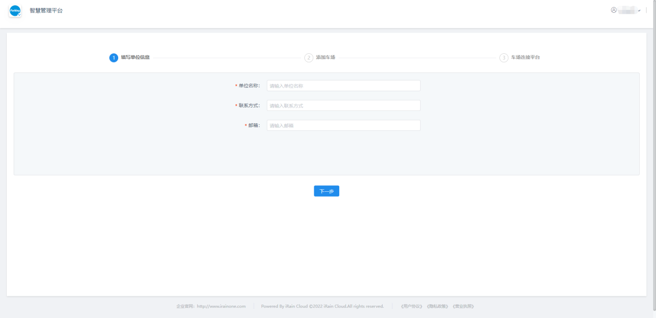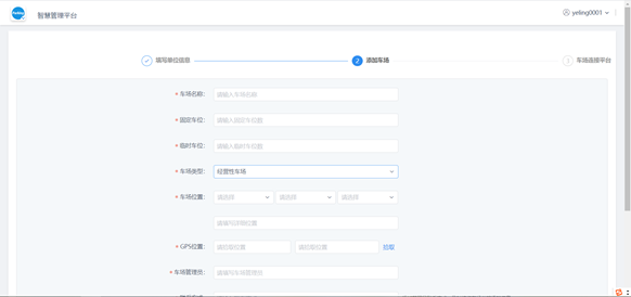 集团信息创建完成之后,需要添加一个车场,按照要求,填写车场信息;