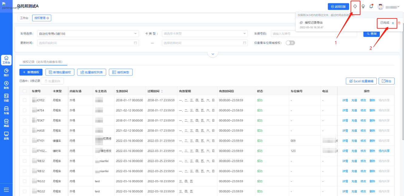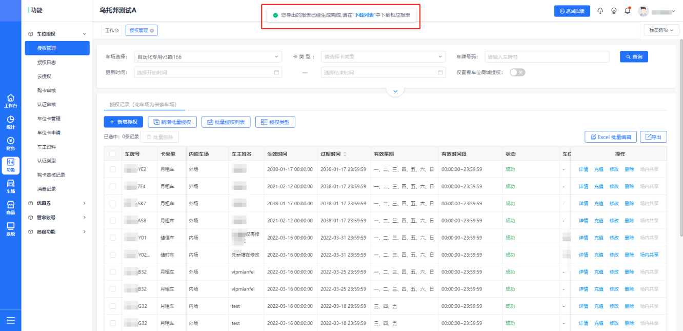 集团账号:集团账号拥有系统所有的功能管理权限,可以管理多个车场;