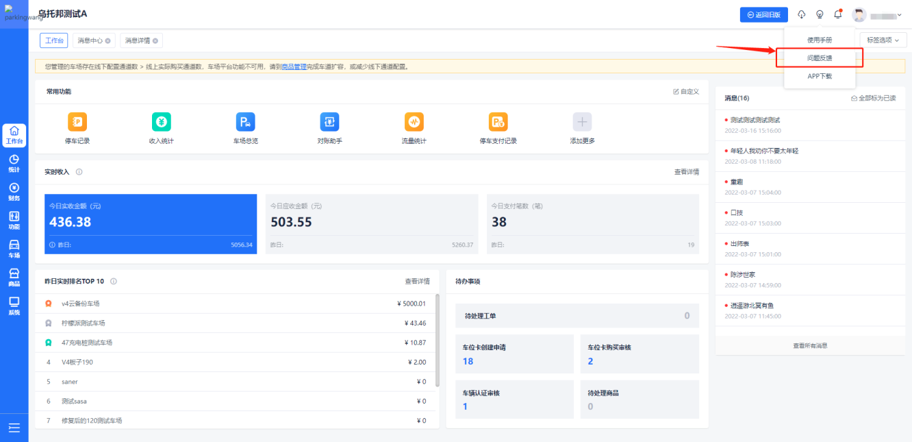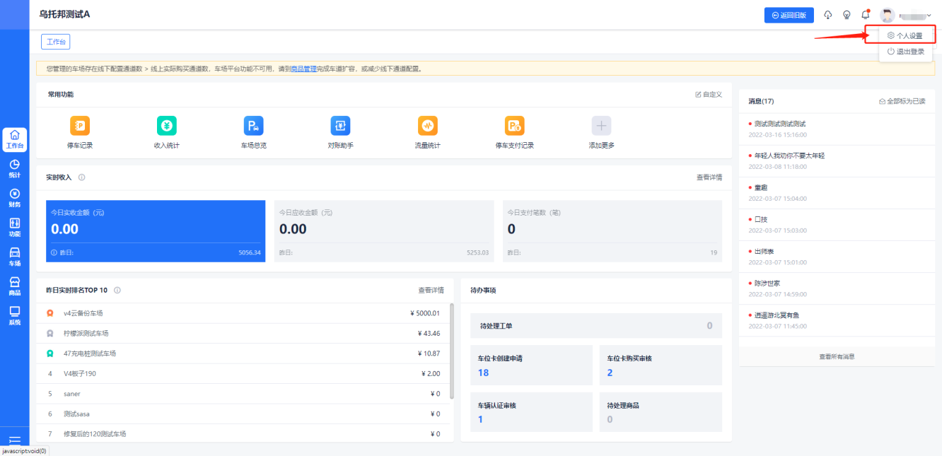 接下来,您就可以进入大掌柜(iop)车场经营管理系统,通过平台进行车场的管理了。