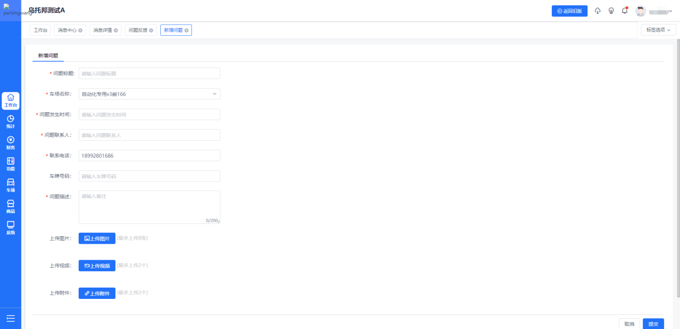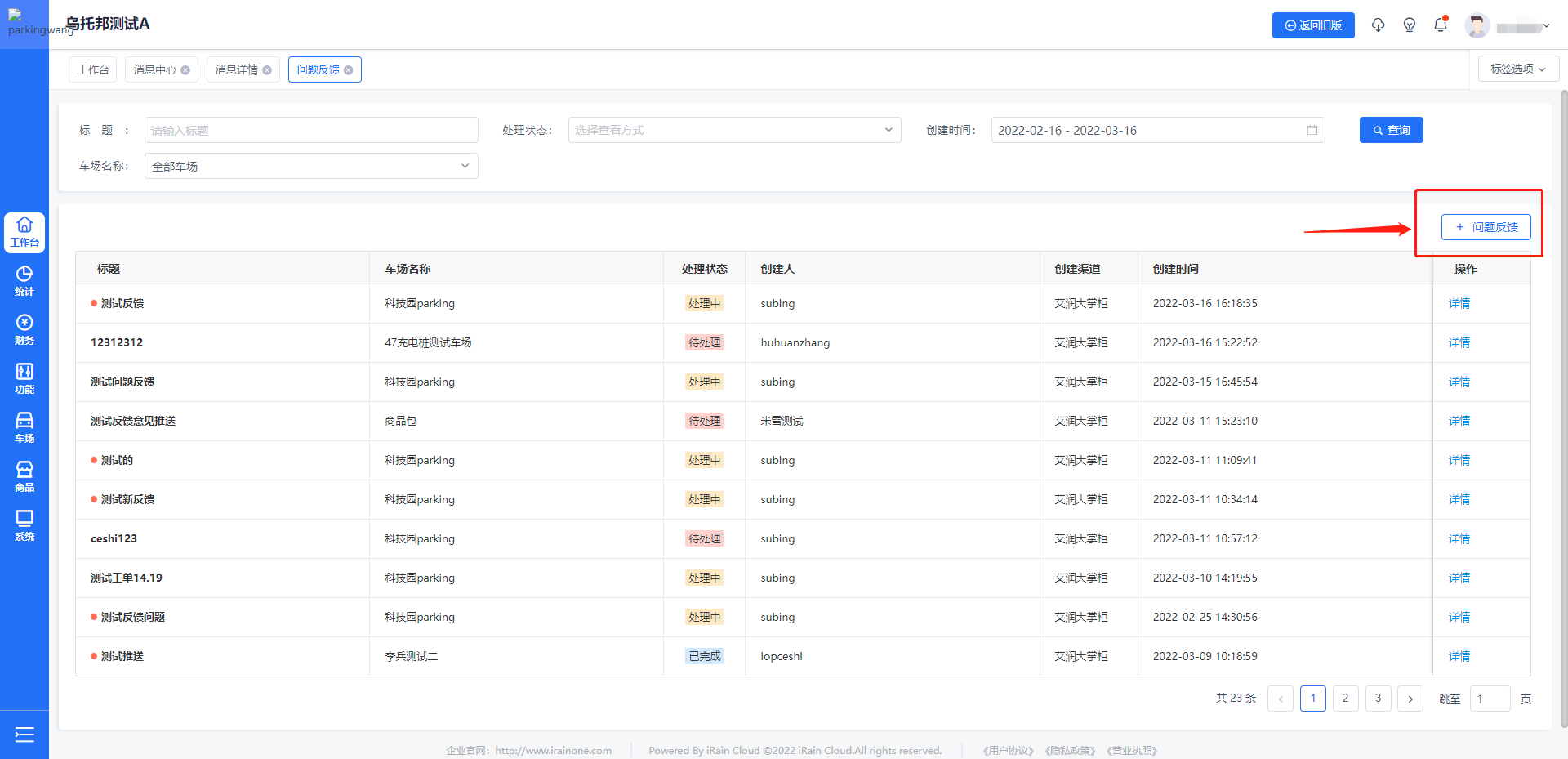 第三步:点击右下角 ”提交” 按钮,完成问题反馈。页面自动返回问题列表页。刚提交的问题单就在列表第一行中。