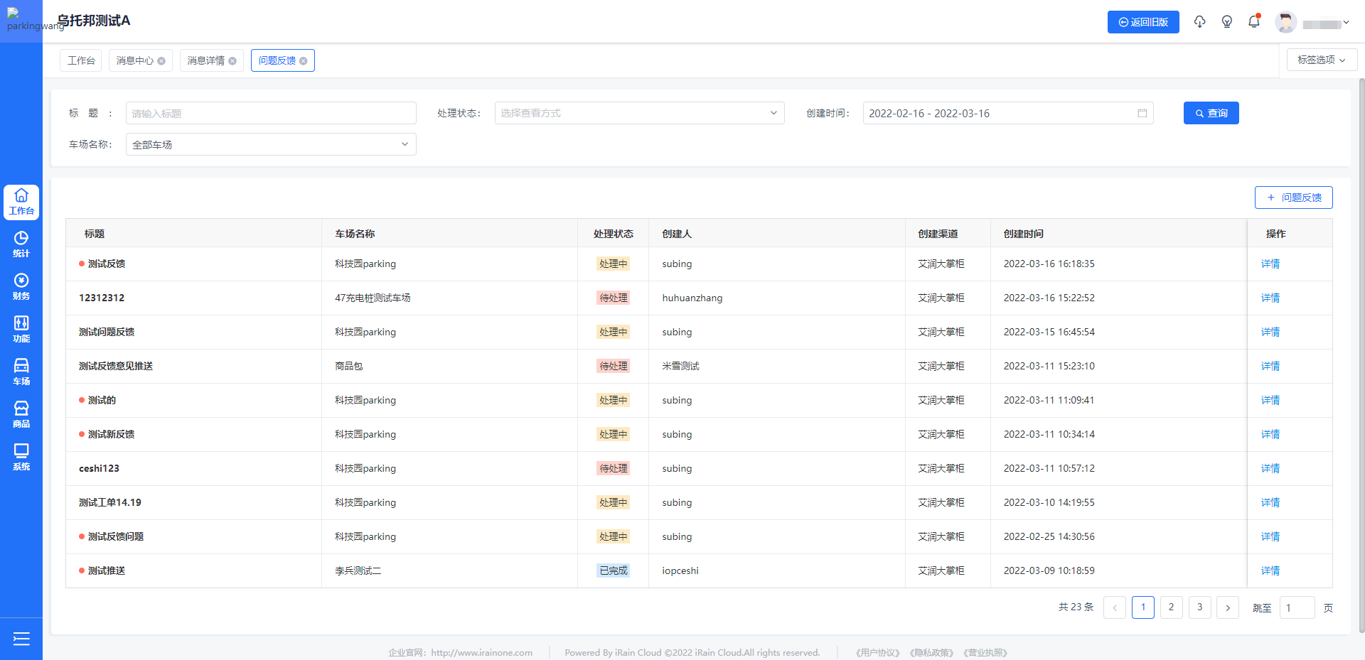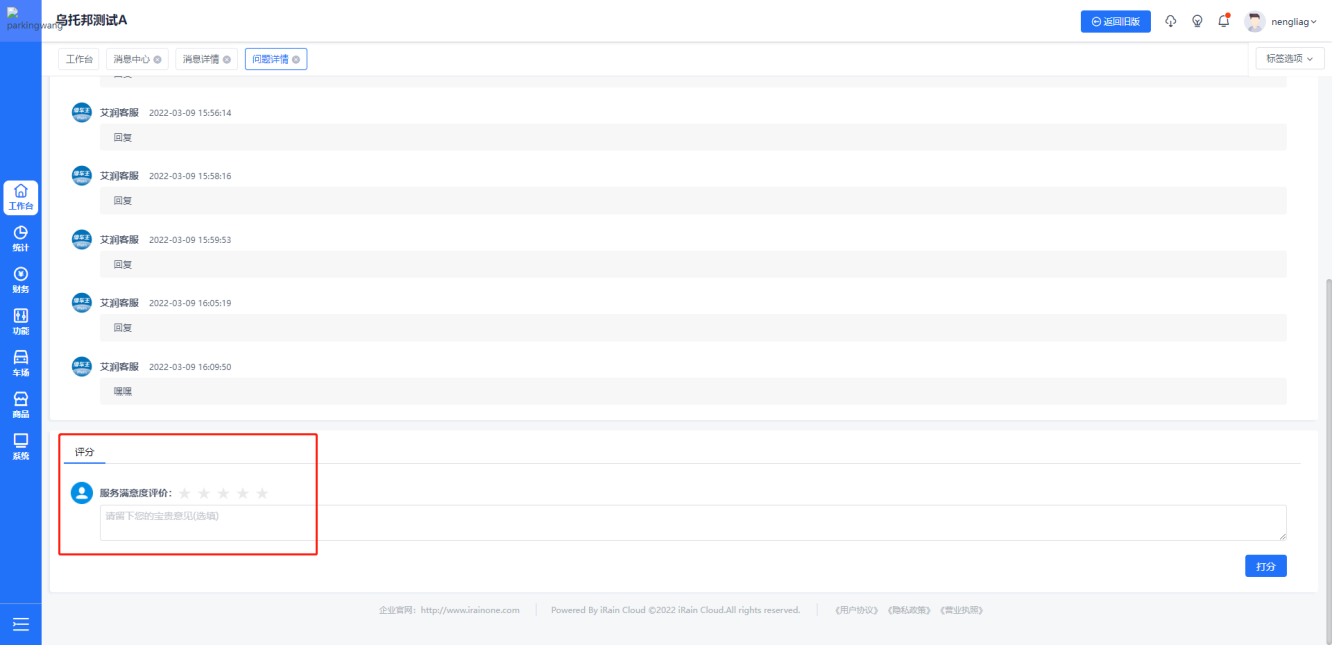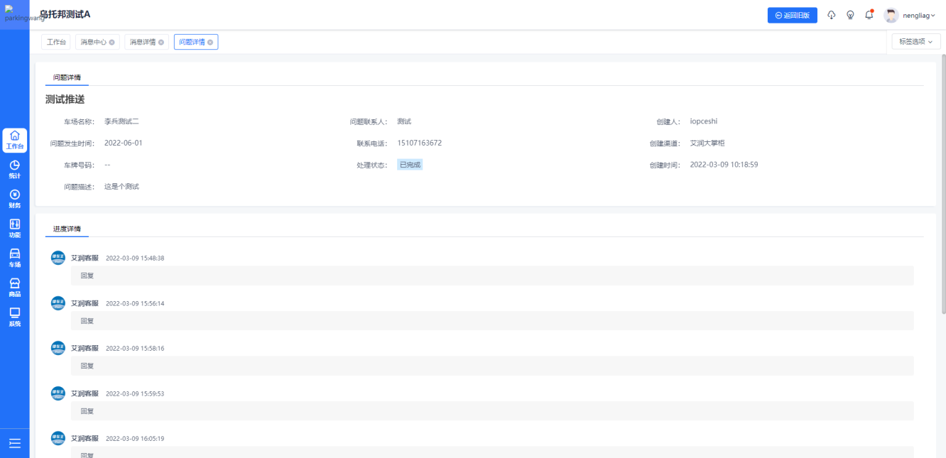 | 已关闭 | 车场用户完成打分评价的工单 |
