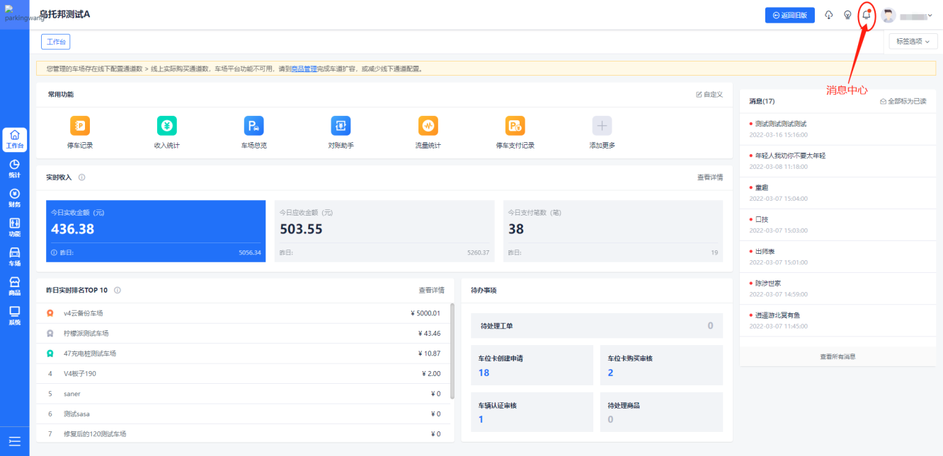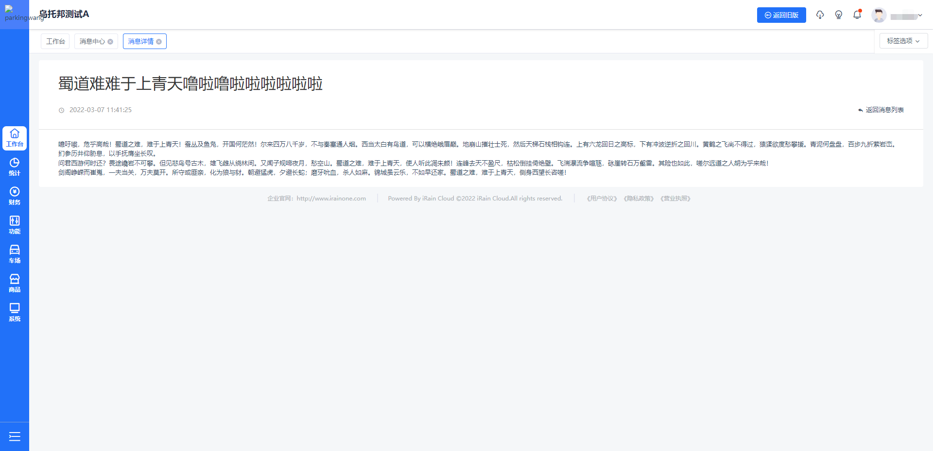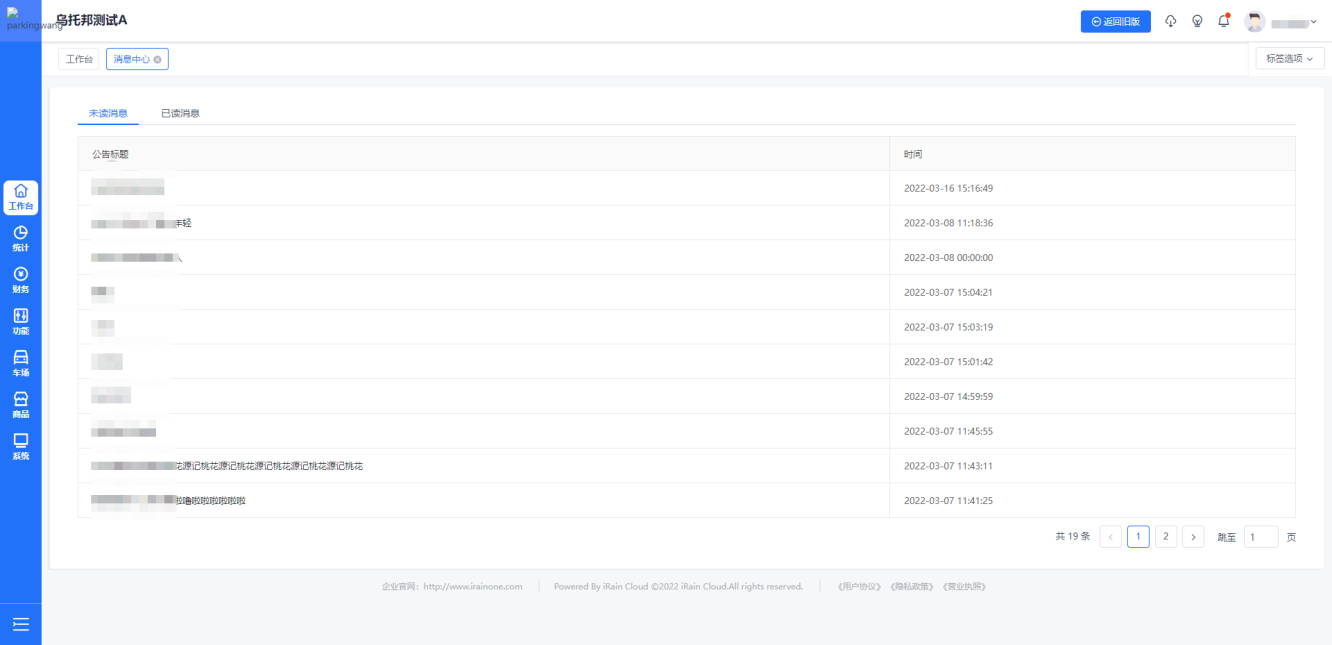 艾润公司的业务通知都会以消息形式发送到各车场的消息中心,您可以在消息中心像查看邮件一样查看所有消息。