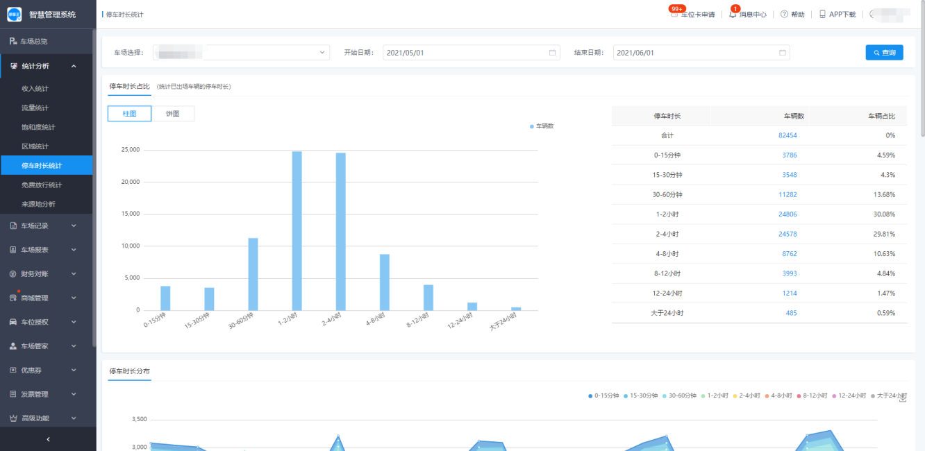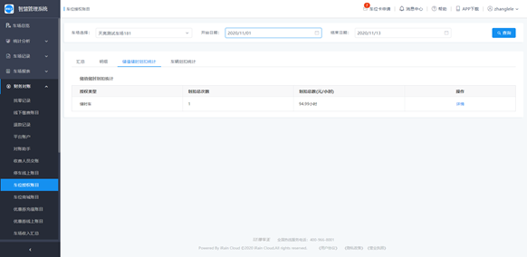 停车时长统计仅支持单车场查询,最大支持2个月的数据查询。