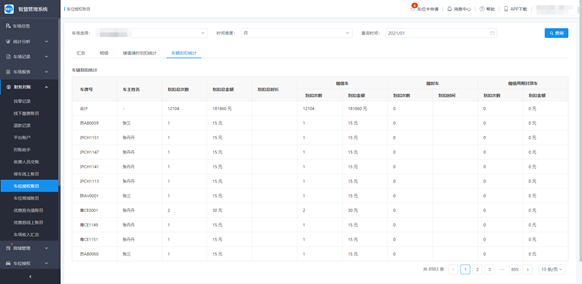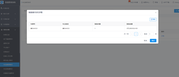 车辆划扣统计和储值划扣统计类似,车辆划扣是以车辆作为维度,统计一段时间范围内,每一个车辆的储值、储时划扣次数和划扣总额度;