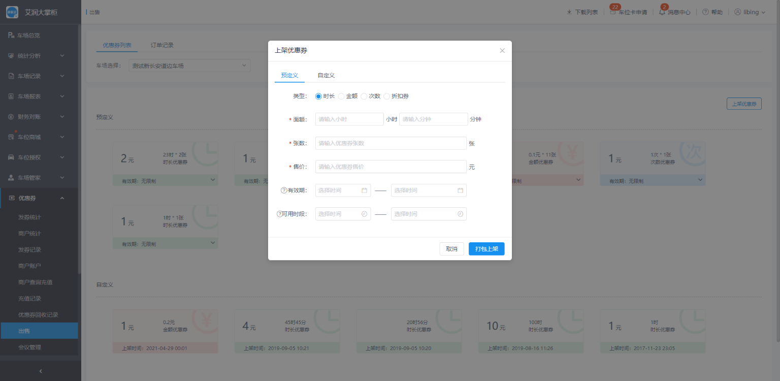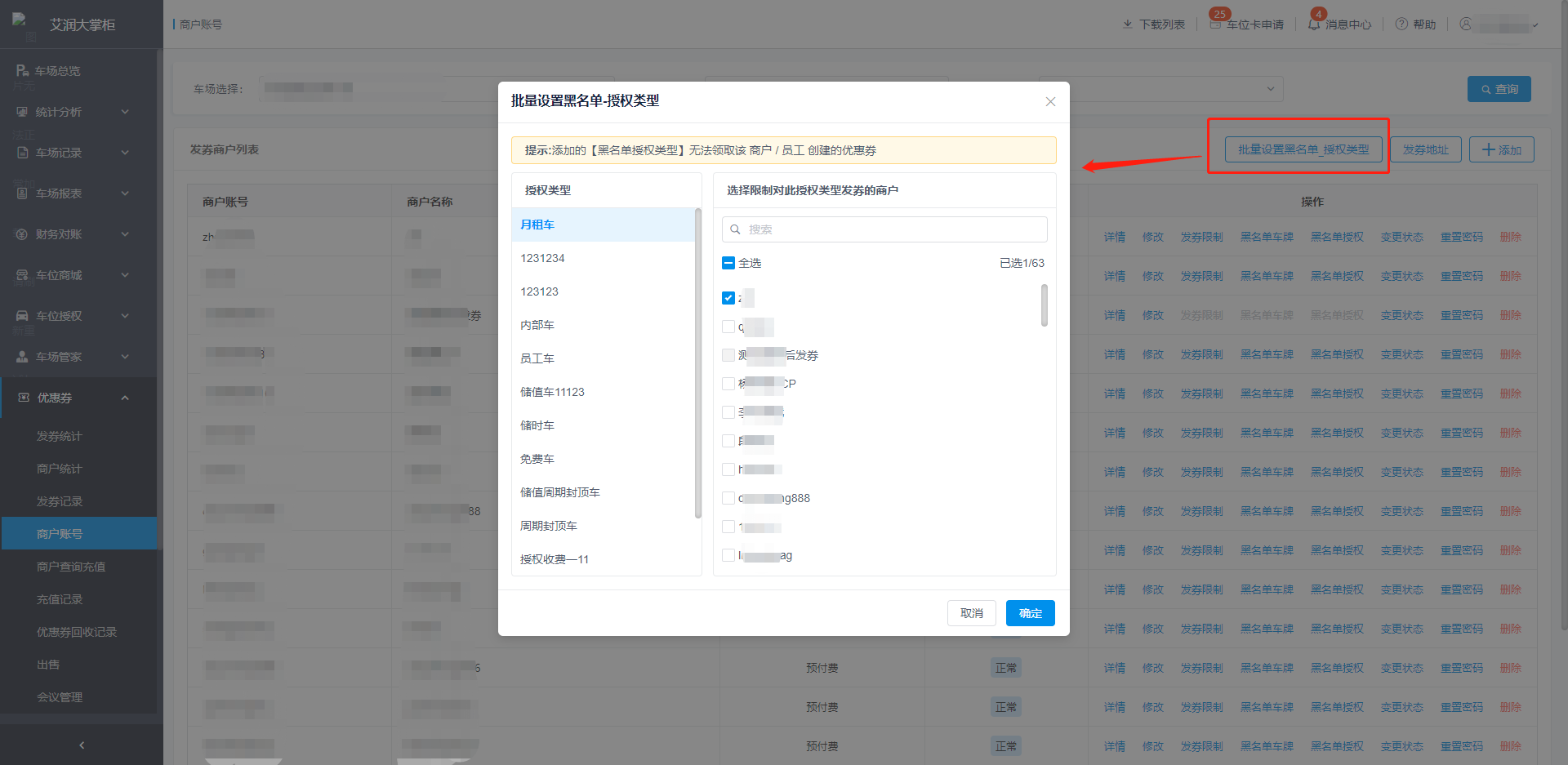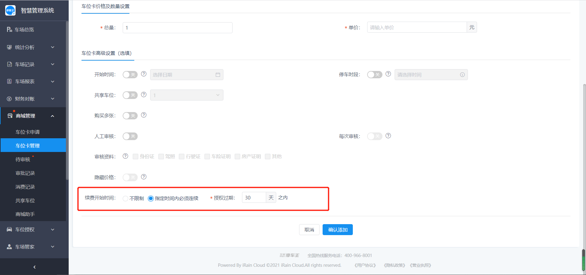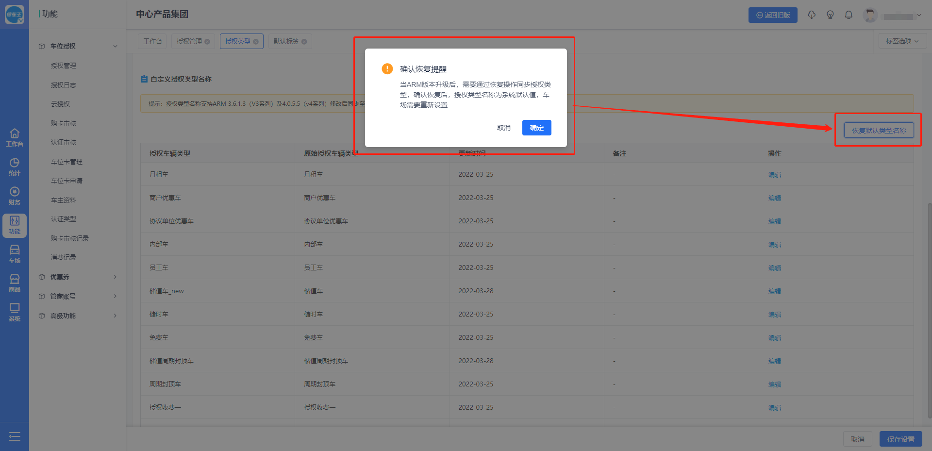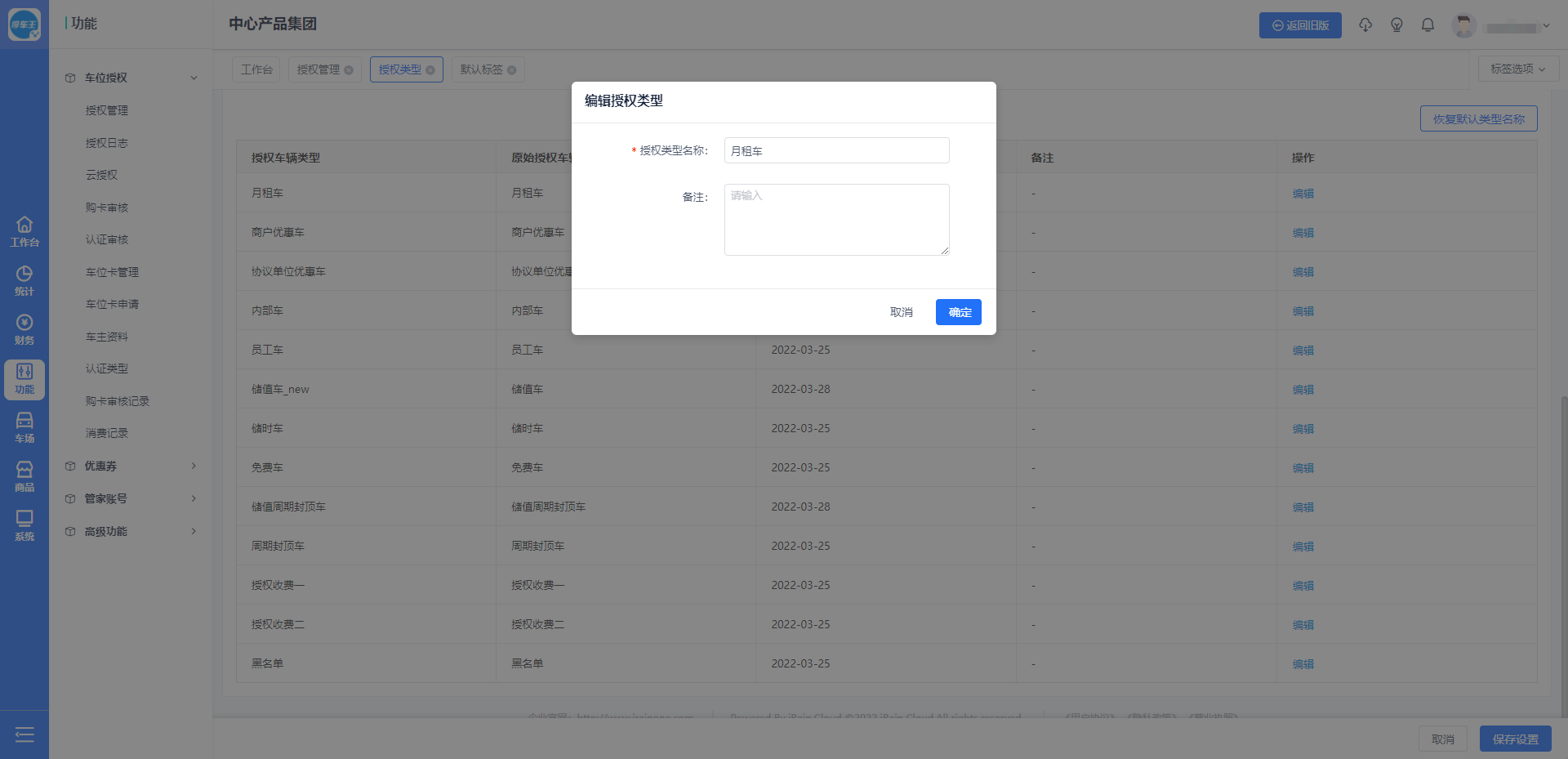 车场要对某种授权类型进行操作,需要提前购买包含那类授权类型功能的商品;