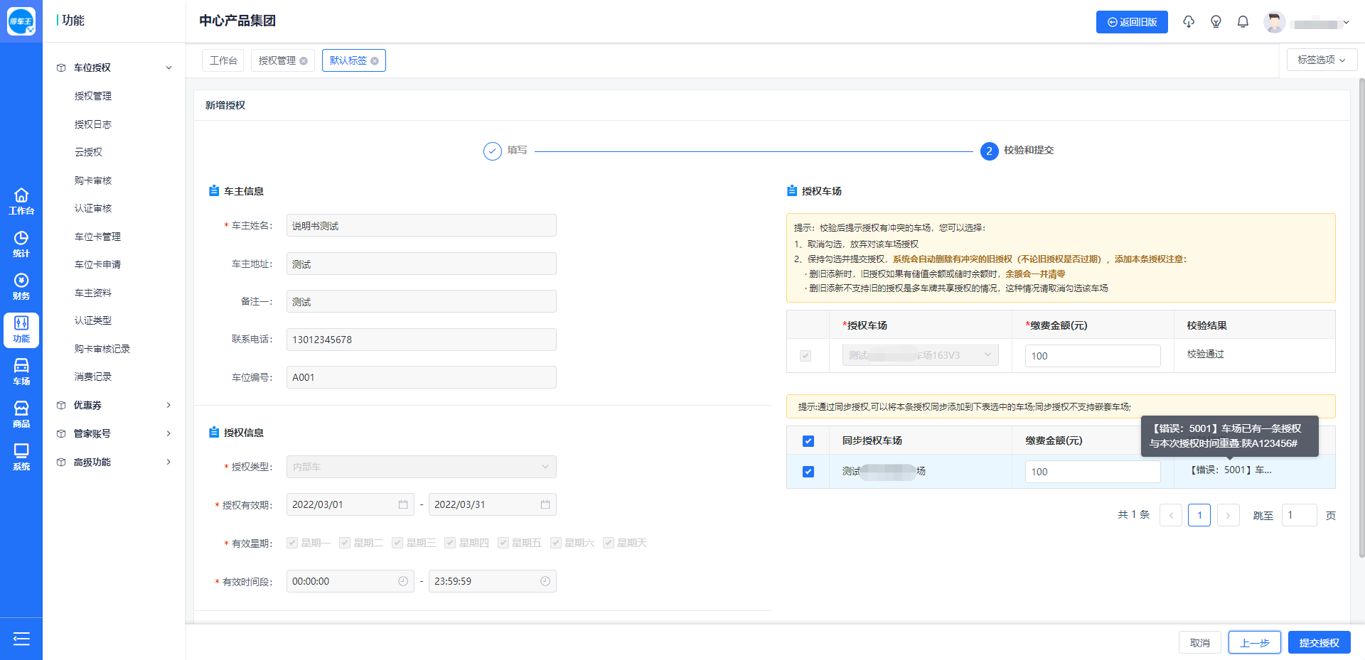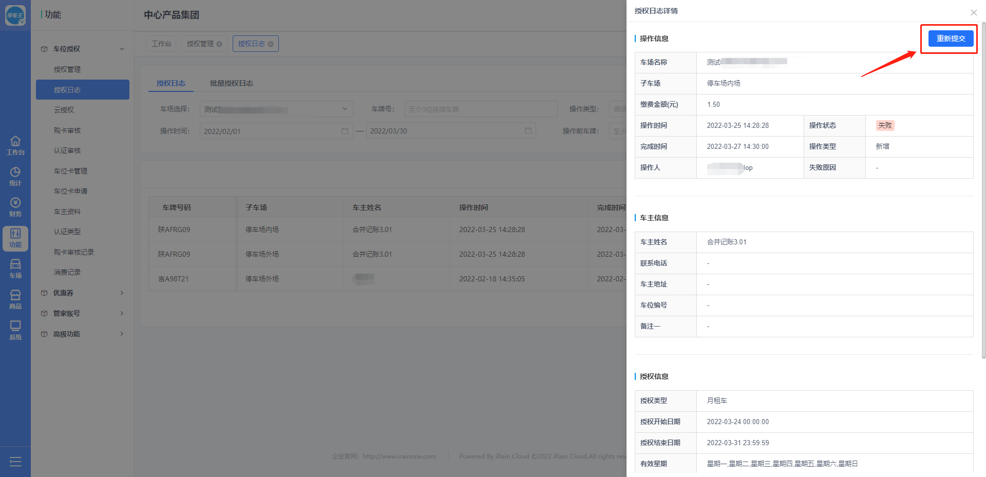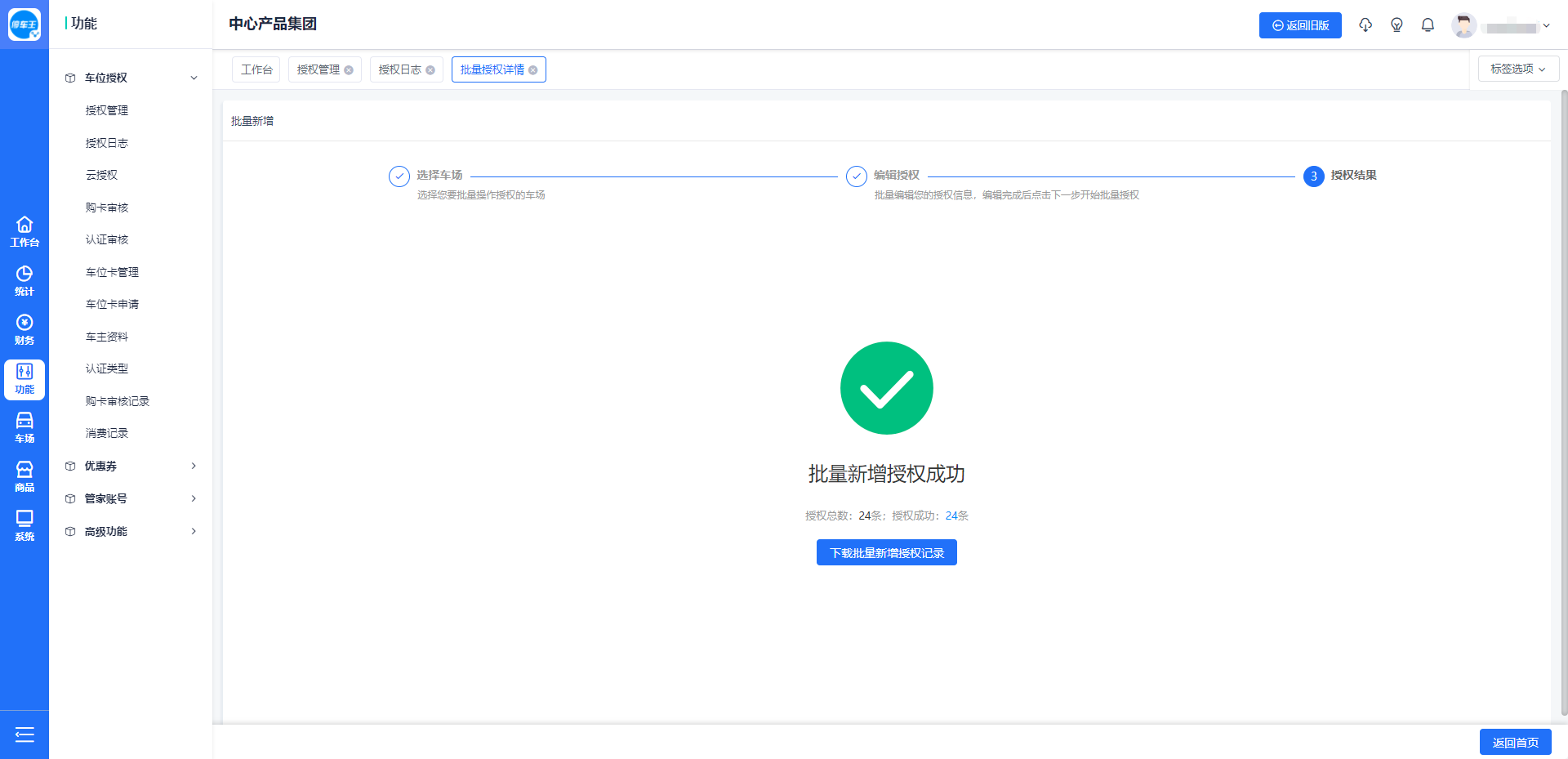通过校验的授权,点击 “提交授权” 按钮后,二次确认后,系统开始向车场下发授权。