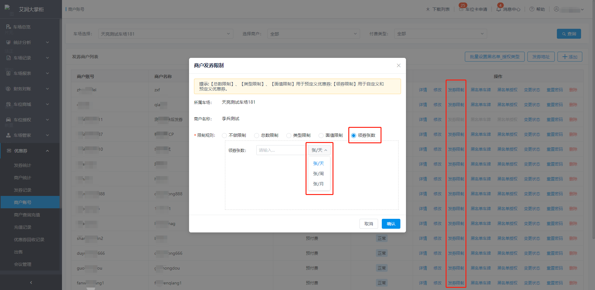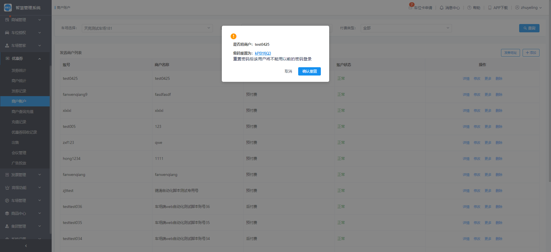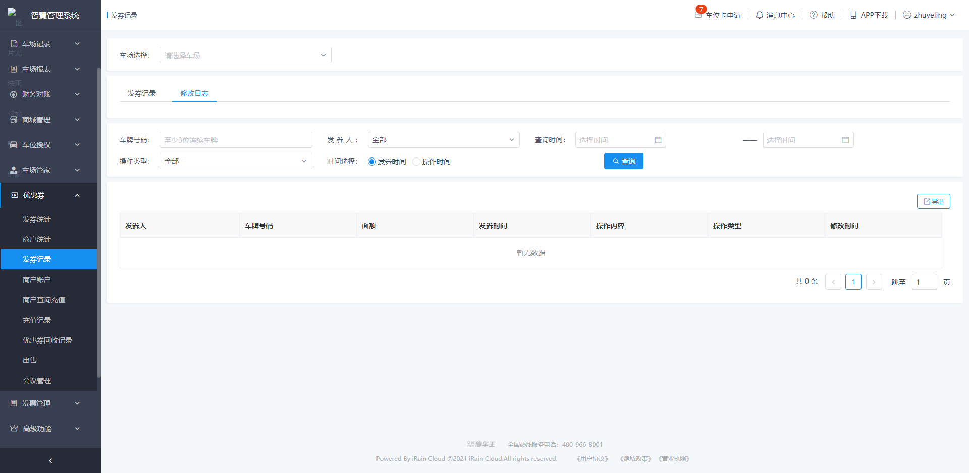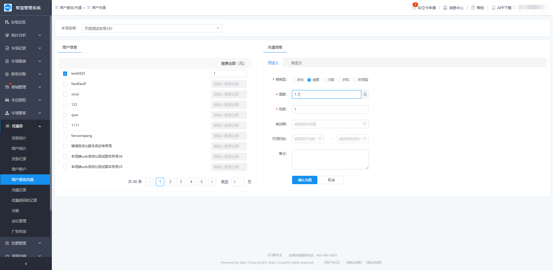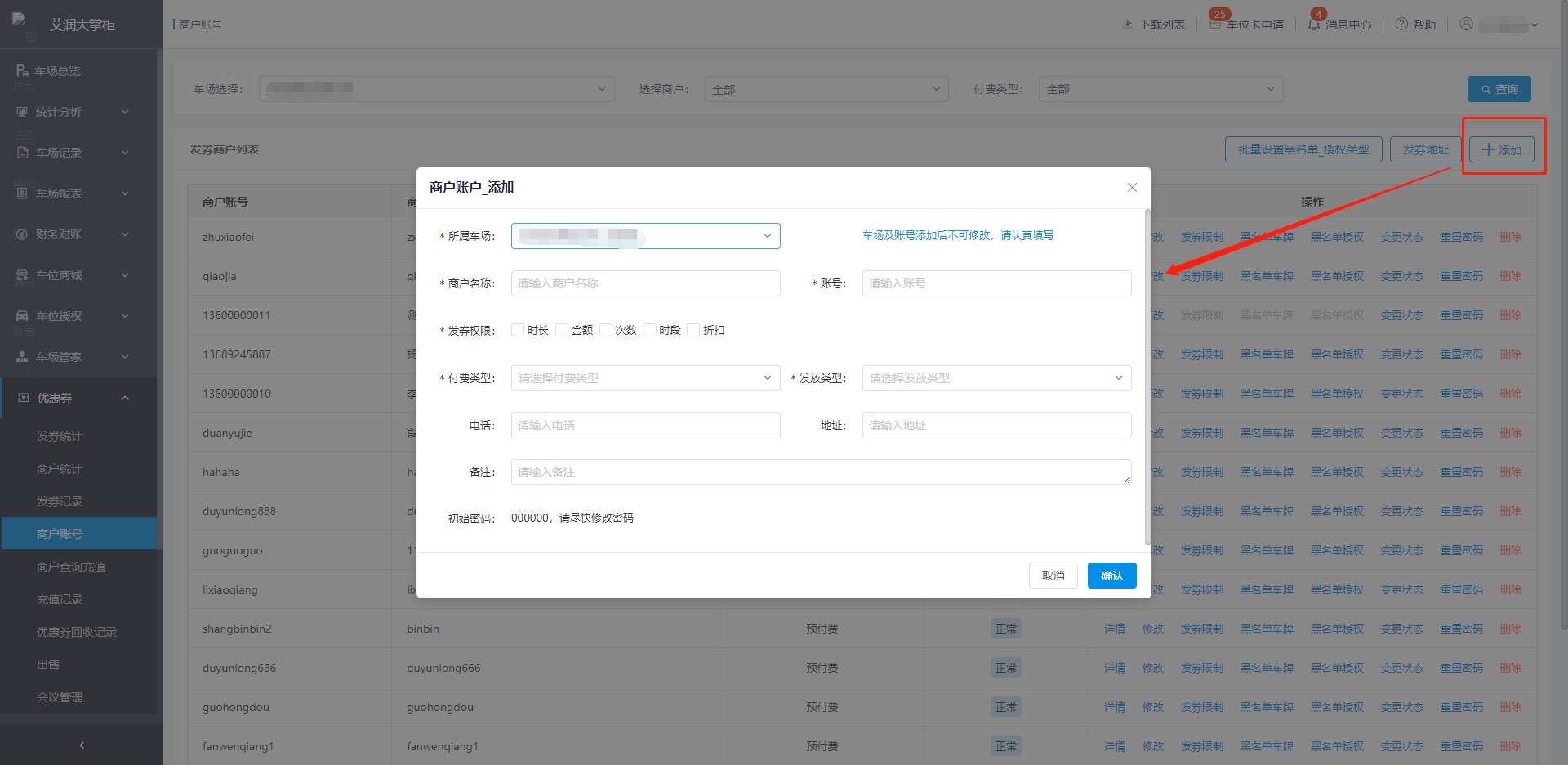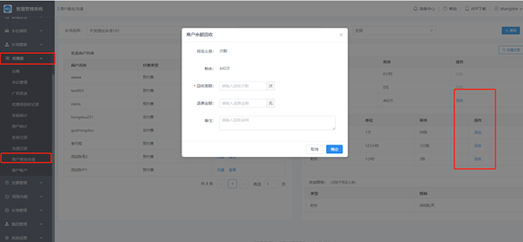 | 艾润大掌柜(iop) | 车场管理员 | 查询、新增、续费充值、编辑、删除 |