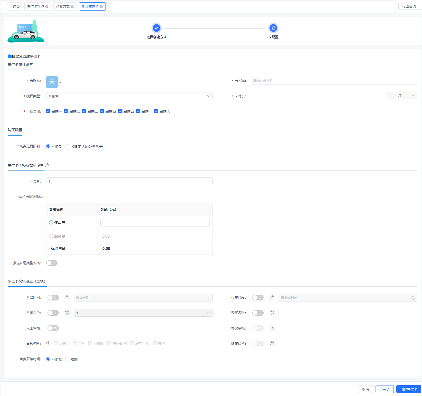 开启后,对应认证类型的车辆购买时,按照为指定认证类型配置的价格支付,不在配置范围内的车辆购买时,任然按照车位卡标准售价支付购买;