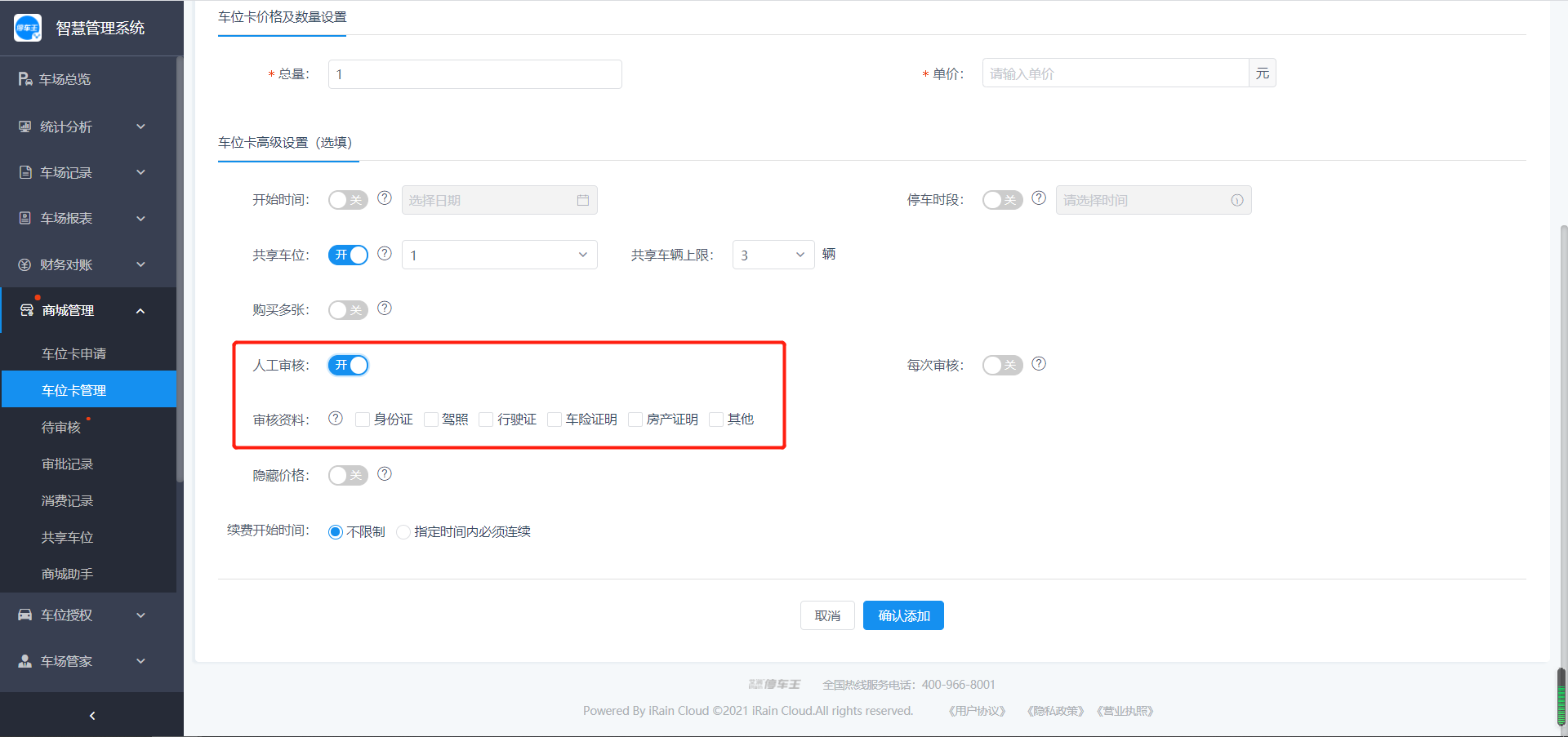 仅支持开启了人工审核的车位卡,配置隐藏价格功能;