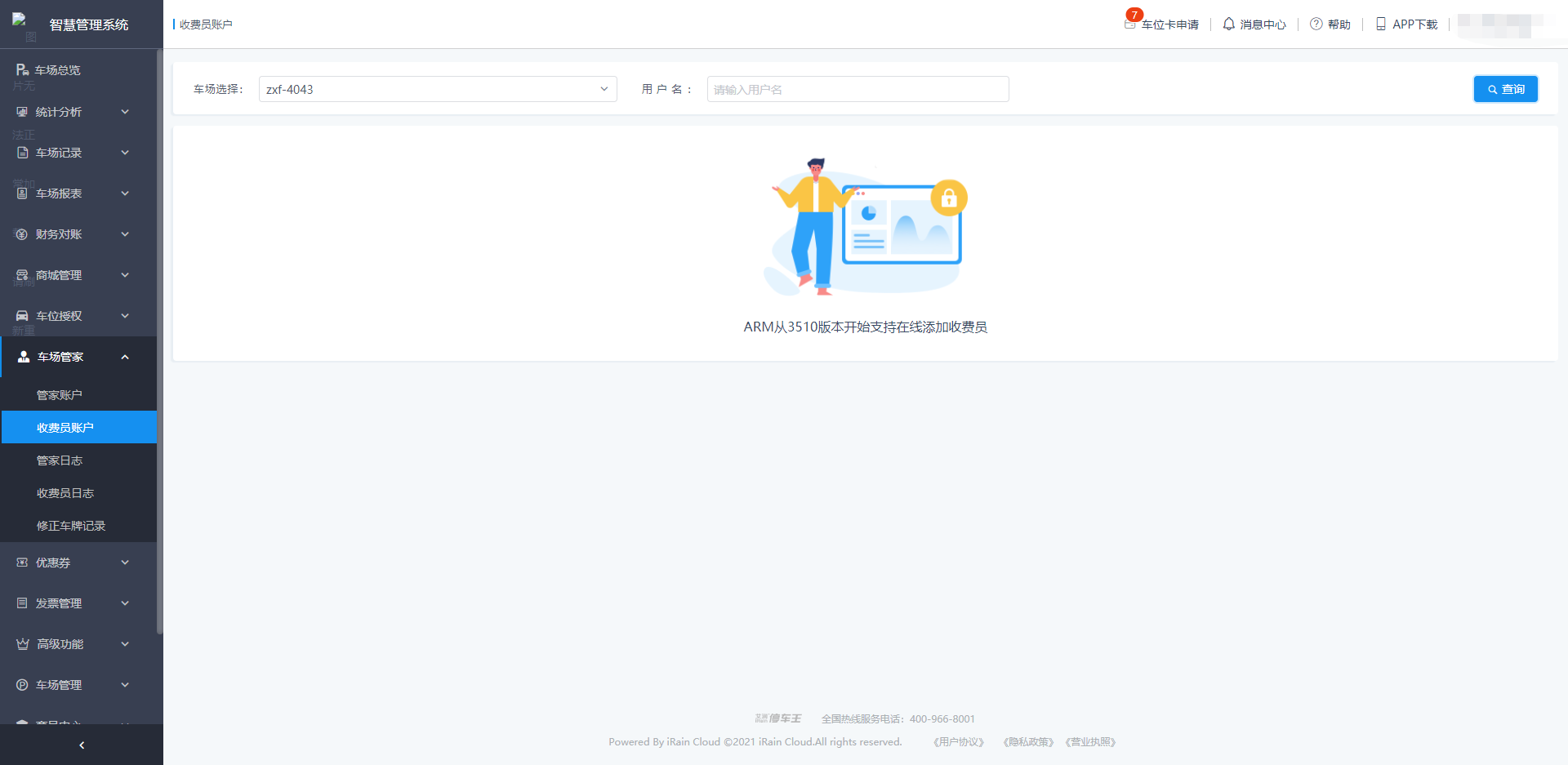 仅ARM3510及以上版本支持在平台上创建及编辑收费员账户