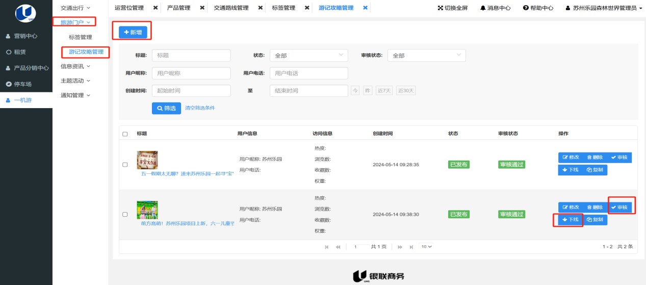 2.2 游记攻略管理