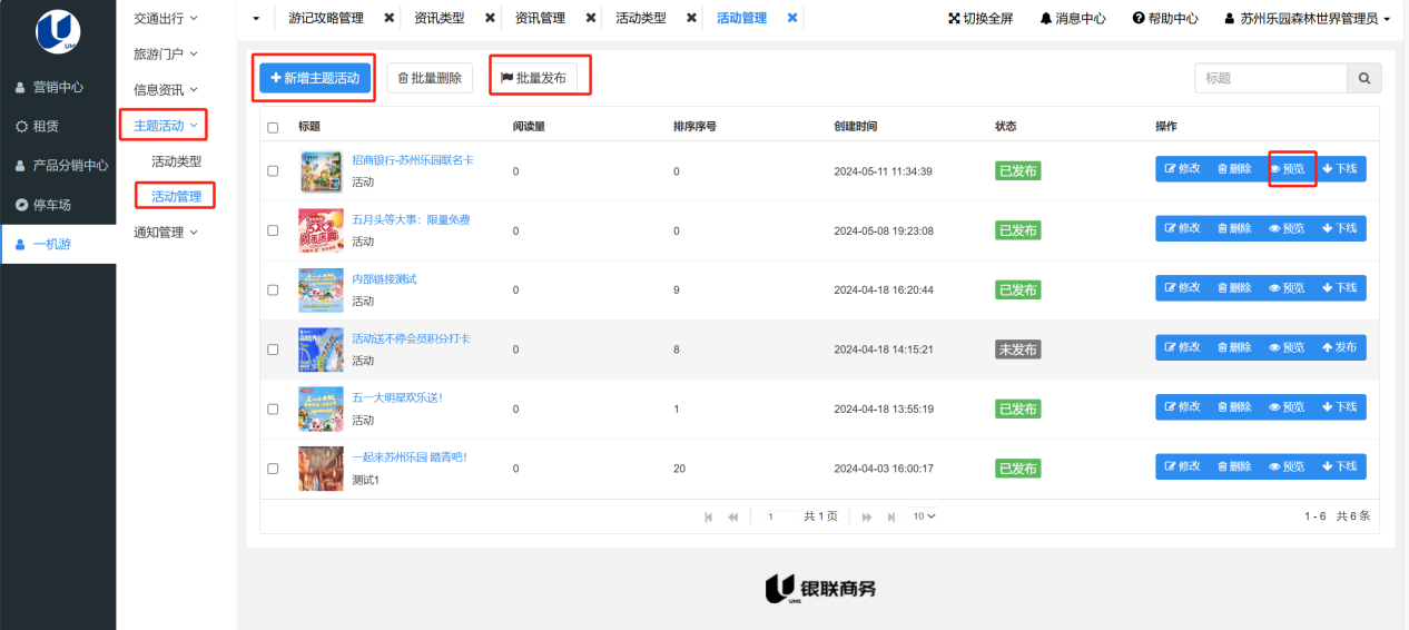 添加想要发布的活动内容,同2.2游记管理,配置好内容后保存,点击预览,无误后批量发布。